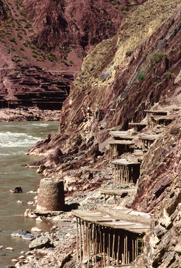 Tea, salt, resin, wool, religious artifacts and leather all moved along pathways that at times, were nothing but hints of lines, or scuffed pieces of stone along the mountain corridors. Salt was the dusky “white gold” of the mountains and though there were many sources, the one that was mentioned as the most coveted and remote, was from ‘Tsa’ka’ (place of salt'), and it was accessed by the Tsa-lam (Salt Road) in south east Qinghai. It was alternately known as the “Nomadic Salt Road” as it was a route frequented by nomads in their perpetual scouring of the highlands for vital resources and commodities. Throughout the Himalayas there remain vestiges and memories of trade routes that saw salt and other commodities travel their coiling lengths, but this particular route remained dedicated to salt, its export, and its trade. Apparently too, local nomads and salt traders kept the exact location a secret, as it was a kind of secret stash for them and them only. The barter system was very much the system of trade upon this route of white gold. Further north in Golmud, there are still wide swaths of salt excavation, but this intimate route and source – for a time at least – remained relatively unknown, though the quality of its salt was well known. Salt from these remote areas would find its way back to communities as well as be hauled by yak to market centres that were always parched for the mineral. As one old nomad remarked "If one had salt or tea, one was rich, one could live".